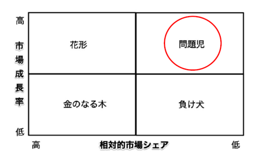 PLCでは成長期(中期~後期)に当たる時期。売上が増加し資金流入は増えるが、市場では競合と激しいシェア争いを行うため広告宣伝費などの資金流出も多く、キャッシュフローはまだそう大きくない。ここで相対的市場シェアを高く保つことができれば、成熟期に「金のなる木」に移行し、キャッシュの源泉とすることができる。